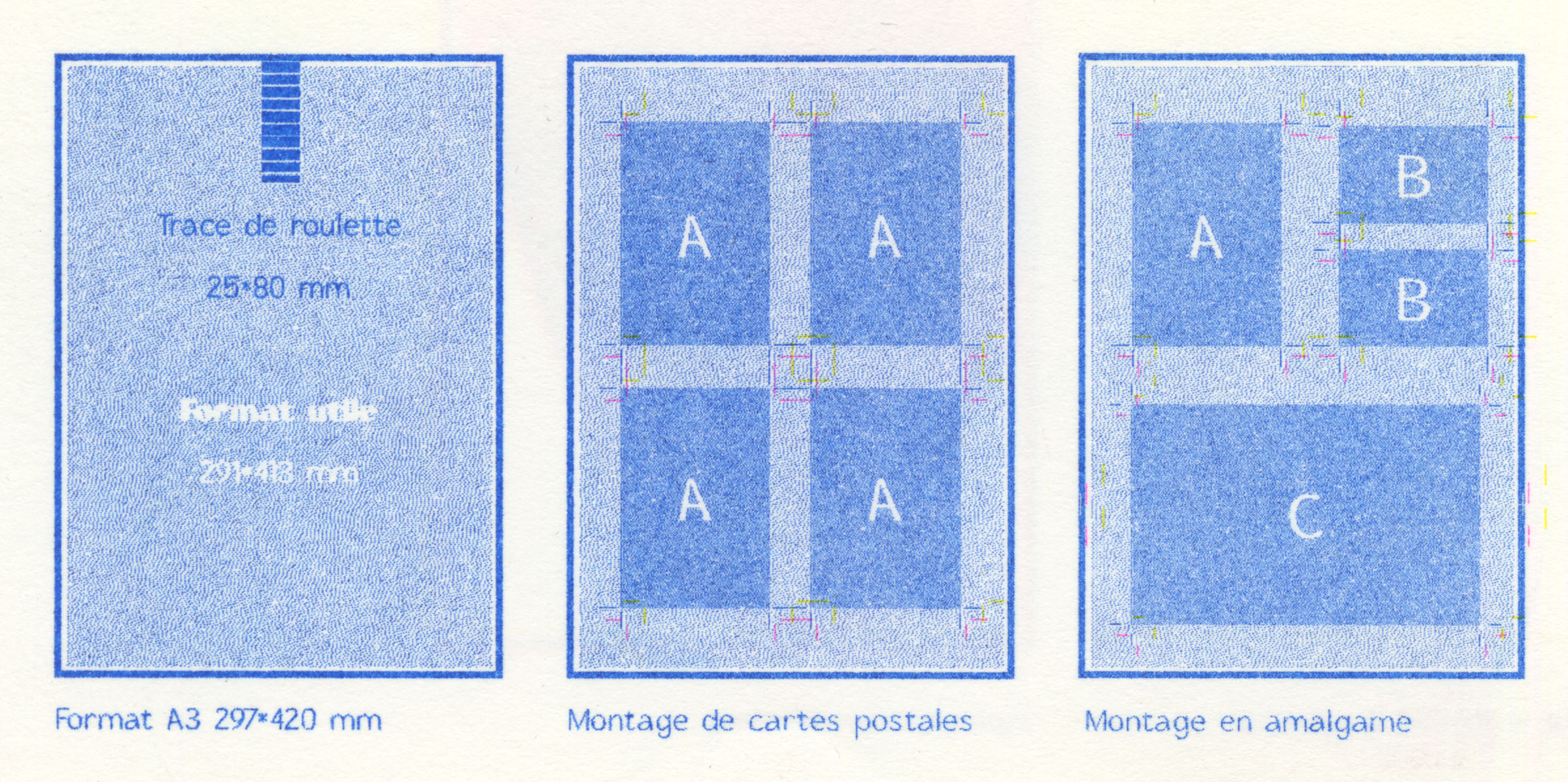 En impression Riso sur un format. A3 (297*420 mm) la surface utile est de 291*413mm.
