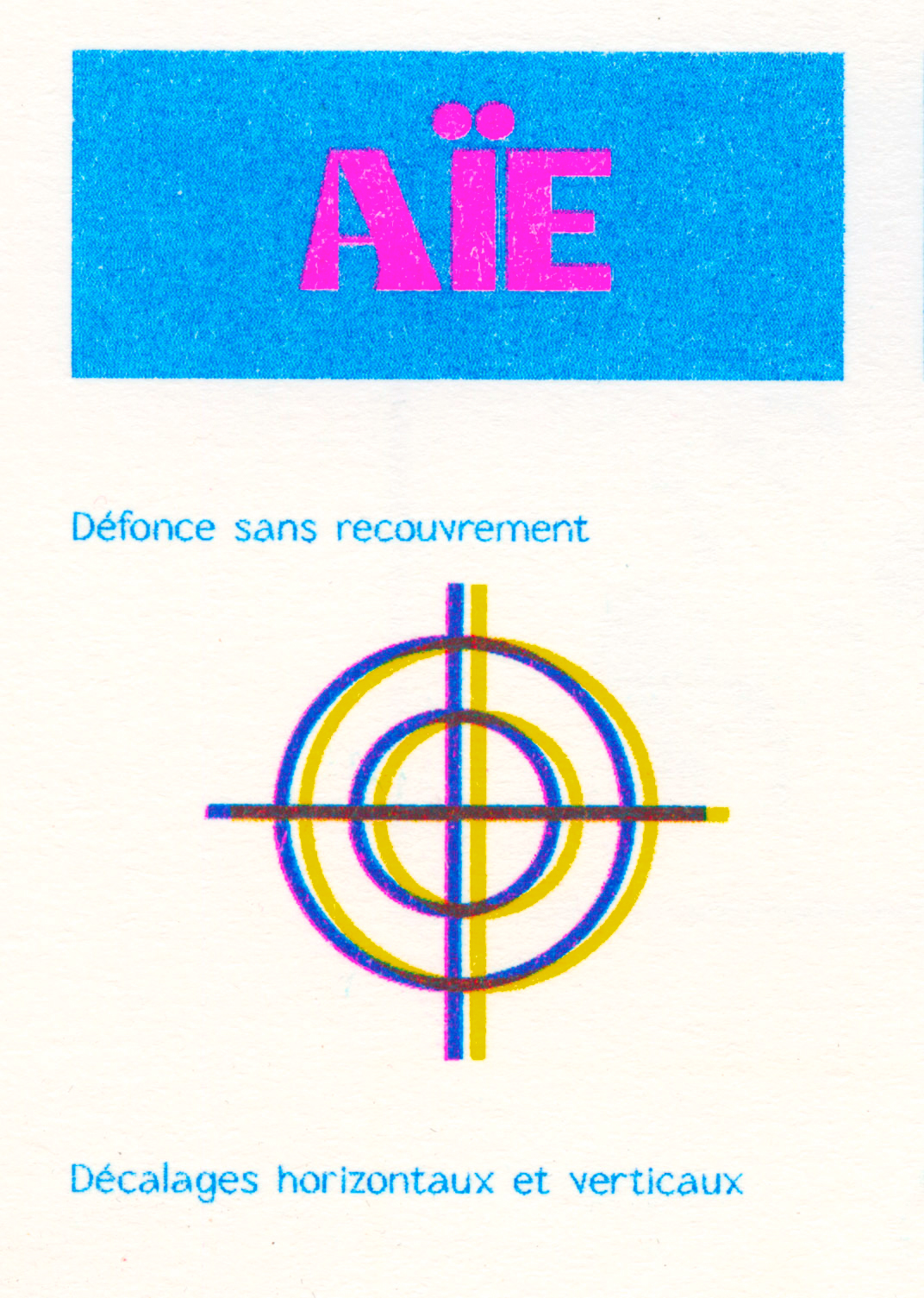 Un léger décalage entre chaques couches est toujours à prévoir. Il est possible de préparer ses fichiers en fonction de ces paramètres afin d'éviter des zones apparentes ou en réserve non désirées lors d'une impression en plusieurs couleurs. S'il y a des éléments en défonce, il est possible d'appliquer un recouvrement entre les deux zones de quelques points pour ne pas laisser le blanc du papier apparaître. Pour rendre le recouvrement moins visible, il est conseillé de faire déborder la couleur la plus claire sur la zone plus foncée.